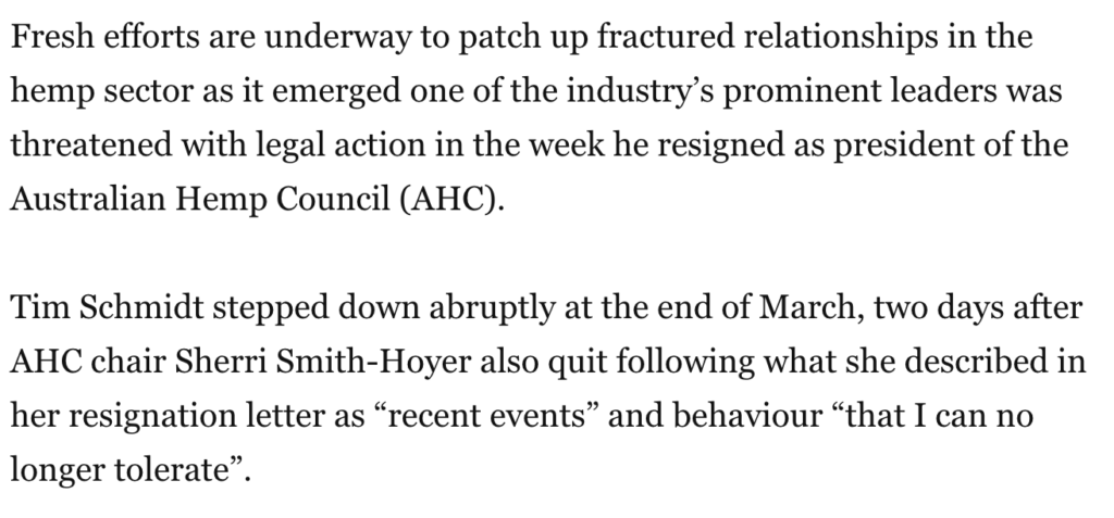 Australia: Abrupt exit of hemp council president exposes deep rifts in national body