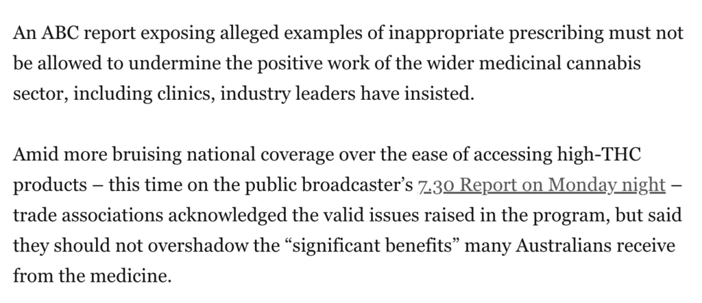 And so on and so forth Cannabiz Australia Read the full report ‘Bad actors must not be allowed to overshadow our good work’ – industry reacts to latest salvo Also from Cannabiz The current regulations are failing to protect patients – they need to be fixed The current regulations are failing to protect patients – […]