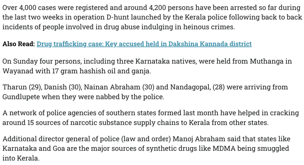 Read more at: https://www.deccanherald.com/india/kerala/around-4000-people-arrested-during-crackdown-on-inter-state-narcotics-rackets-in-kerala-3439142