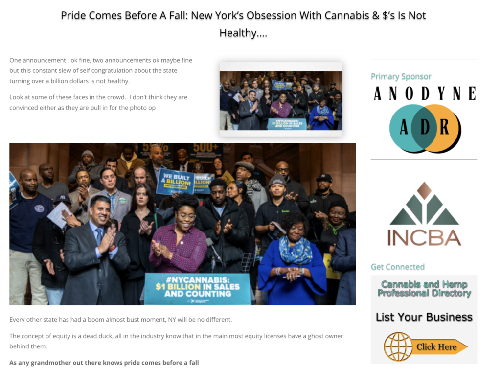 Well done Mr Schroyer from Green Market Report and Mr Damien Cornwell (pictured below) President of CANY. I really thought we’d have to wait till the latter part of 2025 before the House of Cards fell not early March! Remember all this malarky only a few weeks back ? I commented thus https://cannabislaw.report/pride-comes-before-a-fall-new-yorks-obsession-with-cannabis-s-is-not-healthy/ Green Market […]