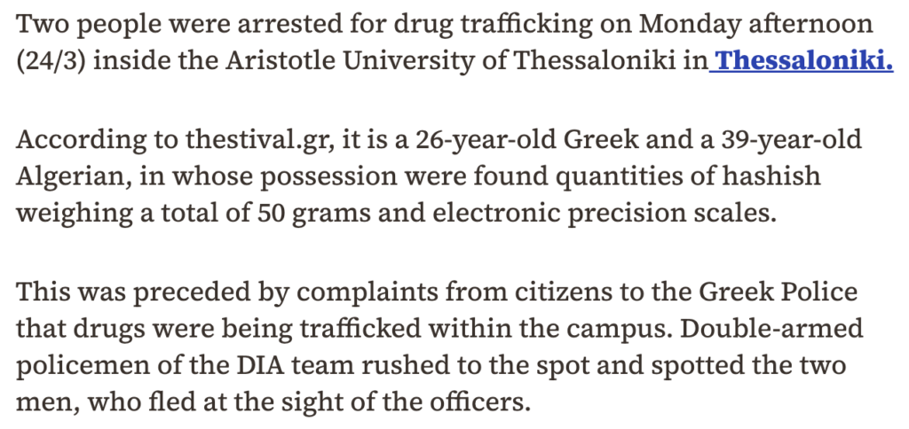 Two people were arrested inside the Aristotle University of Thessaloniki – They were caught with drugs and scales