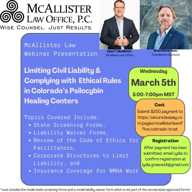 Join me one week from today (or get a recording) of my webinar that will cover (1) a brief update on licensing of facilitators and healing centers for psilocybin in CO; (2) an in depth discussion of reducing your liability with psychedelic therapy, including getting a liability waiver form to do the work and hearing […]